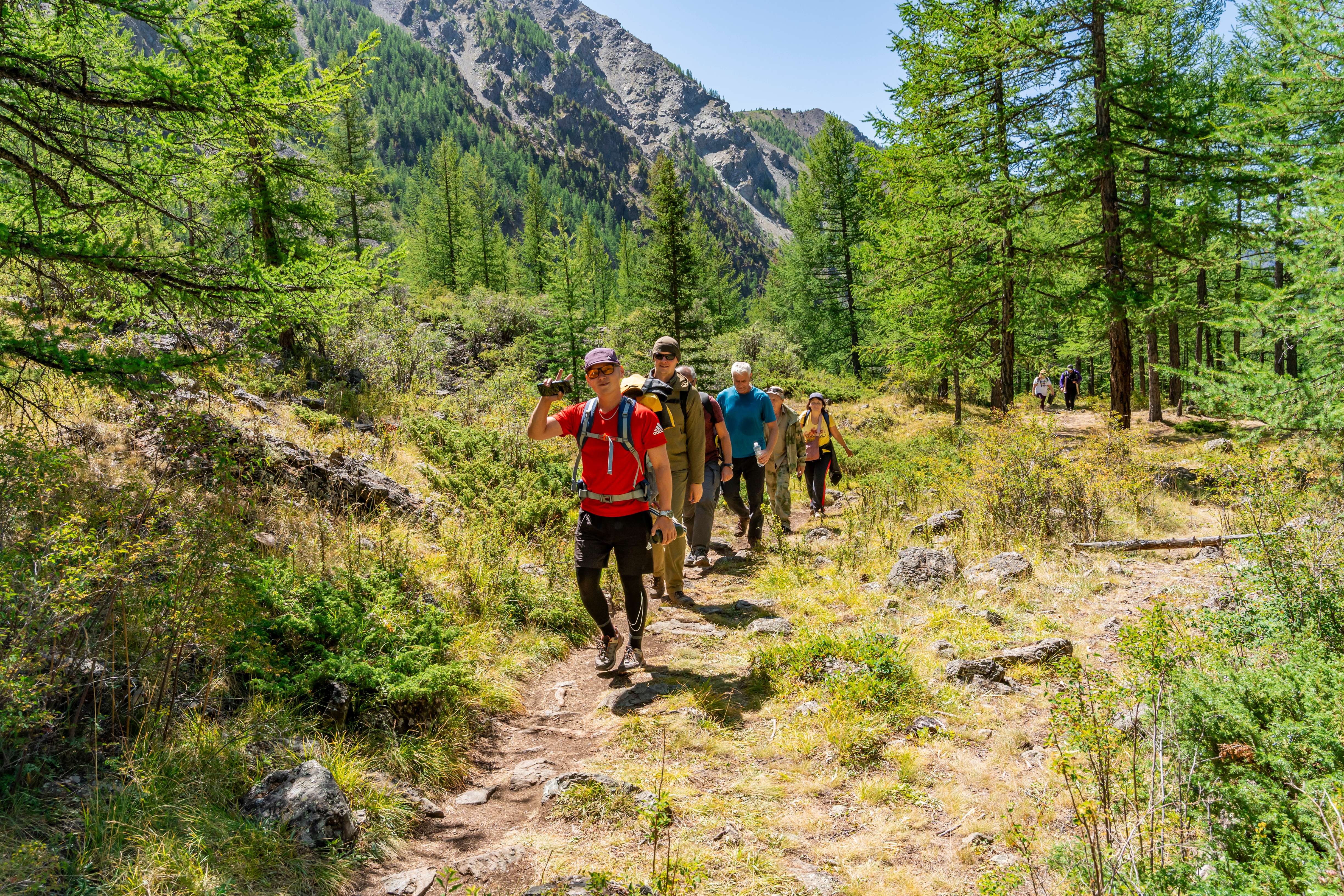 Наш путь начнётся от турбазы Куйактанар, откуда мы ступим на широкую, хорошо натоптанную тропу. Почти сразу же нас окутает прохлада и свежий запах лиственничной тайги. Воздух будет густым и насыщенным - пряный аромат можжевельника и сладковатое благоухание цветущей жимолости. Тропа будет плавно набирать высоту, идя то вверх, то вниз, что позволит нам идти без лишней спешки, в своём ритме. По пути то и дело будут встречаться любопытные бурундуки, которые, словно приветствуя нас, будут звонко пересвистываться с веток кустарников.