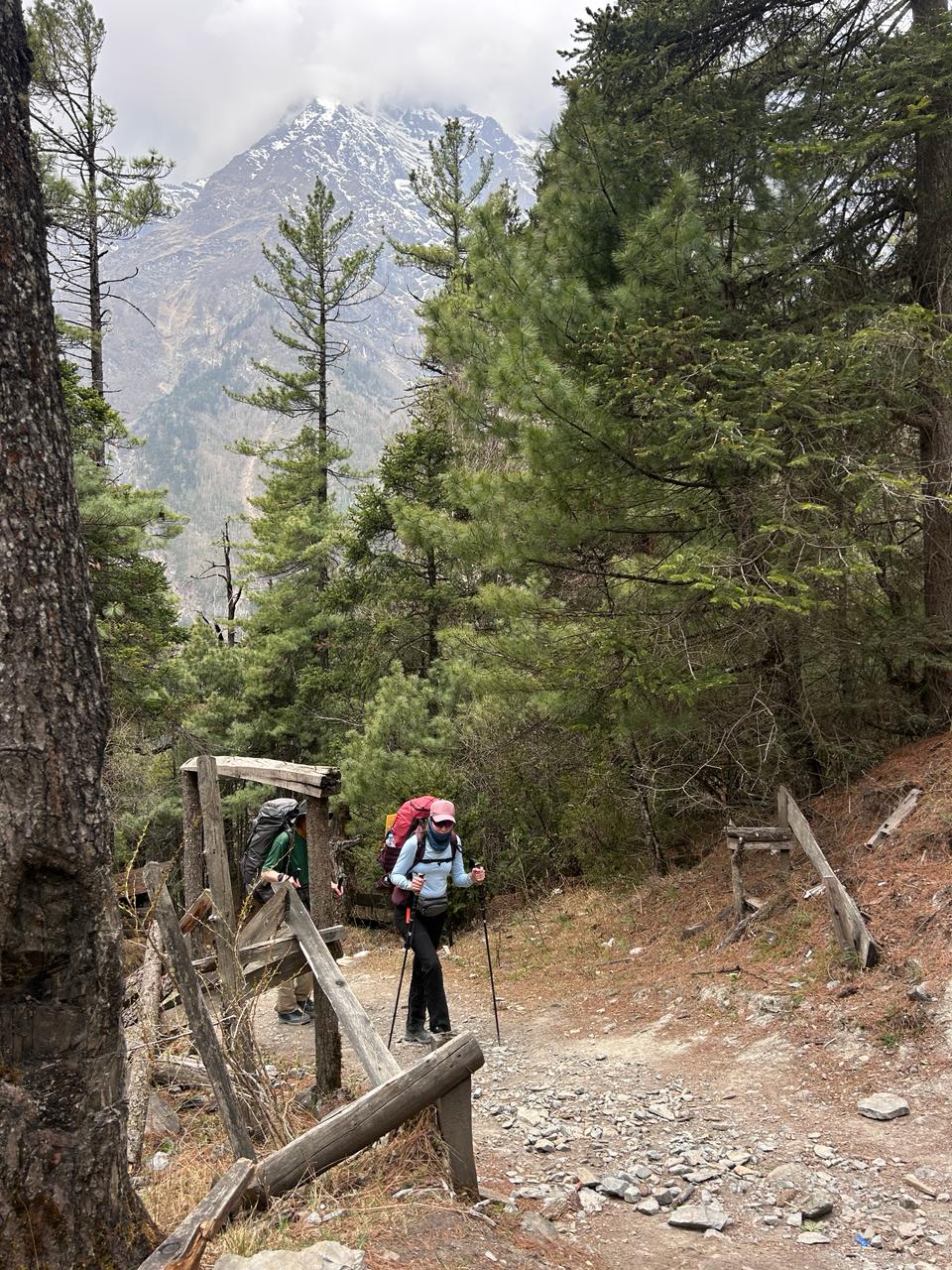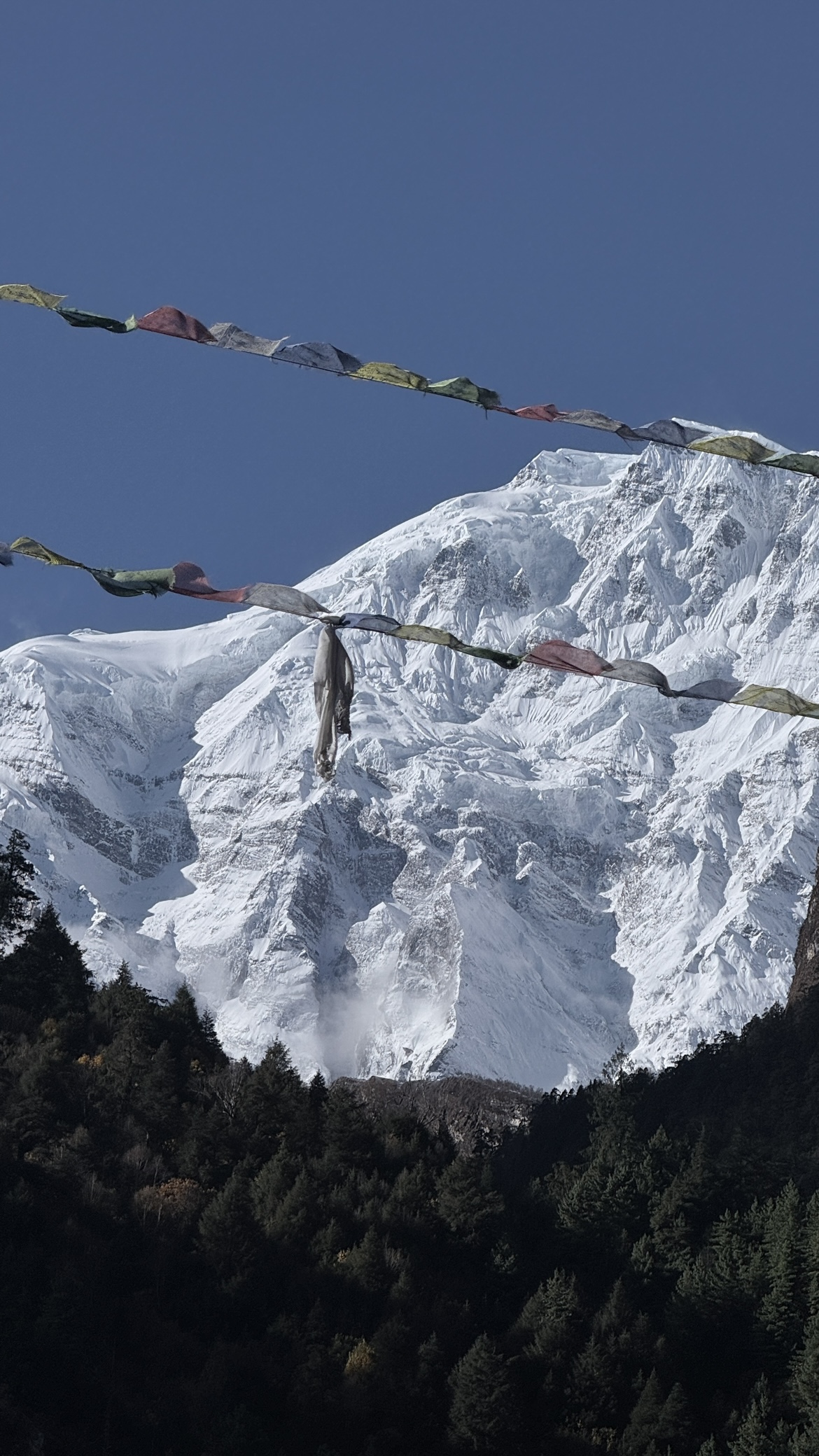 Сегодня нас ждёт насыщенный переход — около 20 км пути с набором высоты примерно 850 метров. Выходим из Чаме с завораживающим видом на Аннапурну Ii (7 937 м), одну из самых впечатляющих вершин региона. Позади ещё долго будет виднеться не менее величественная Манаслу — словно провожающий нас исполин.