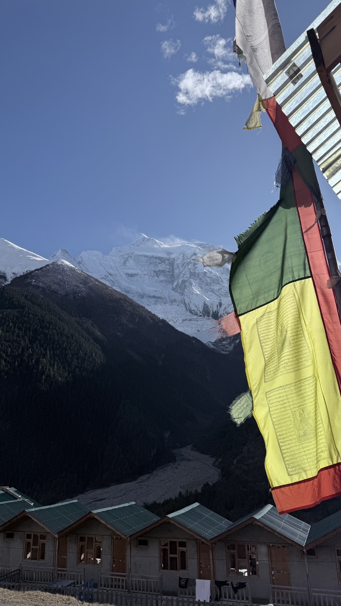 Остаёмся в Мананге — сердце высокогорного мира, окружённые заснеженными вершинами массива Аннапурн. Здесь некуда спешить: мы отдыхаем, привыкаем к высоте, высыпаемся, стираем вещи и просто наблюдаем за жизнью горной деревни.