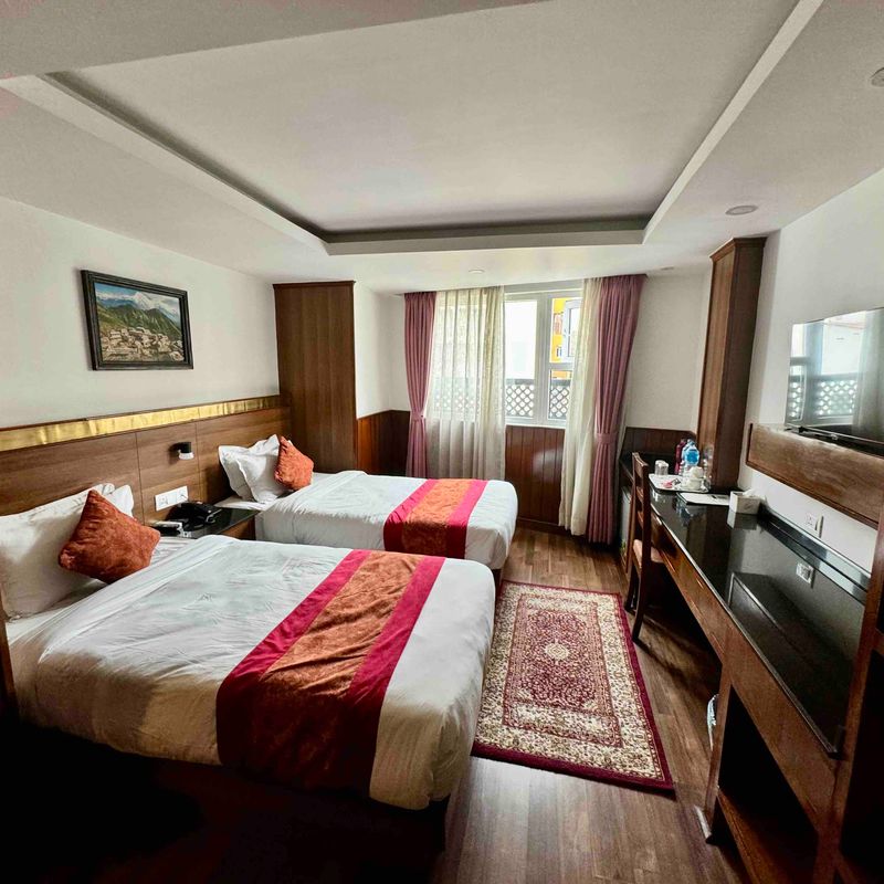 Посетим знаменитый отель Everetst view и выпьем в нем кофе с невероятным видом на всю долину во главе с Эверестом. Зайдем в аутентичную деревеньку Кумжунг, в местный монастырь. Также поднимемся на ступу на холме.