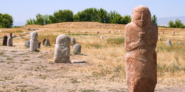 Каменные балбалы (древние тюркские изваяния) стражи долины;