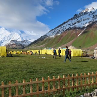 Возвращение в наш лагерь будет похоже на возвращение домой — к тёплым палаткам и юртам под нерушимым взглядом снежного пика.