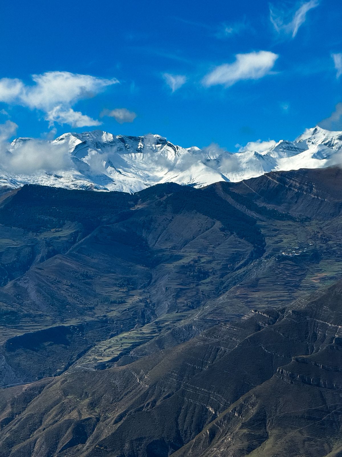 На вершинах гор в декабре лежит снег, что делает и без того фантастический пейзаж еще более нереальным. Но река Сулак не замерзает, так что та самая бирюзовая вода никуда не денется.