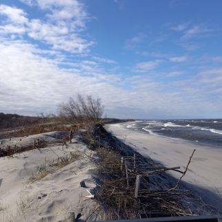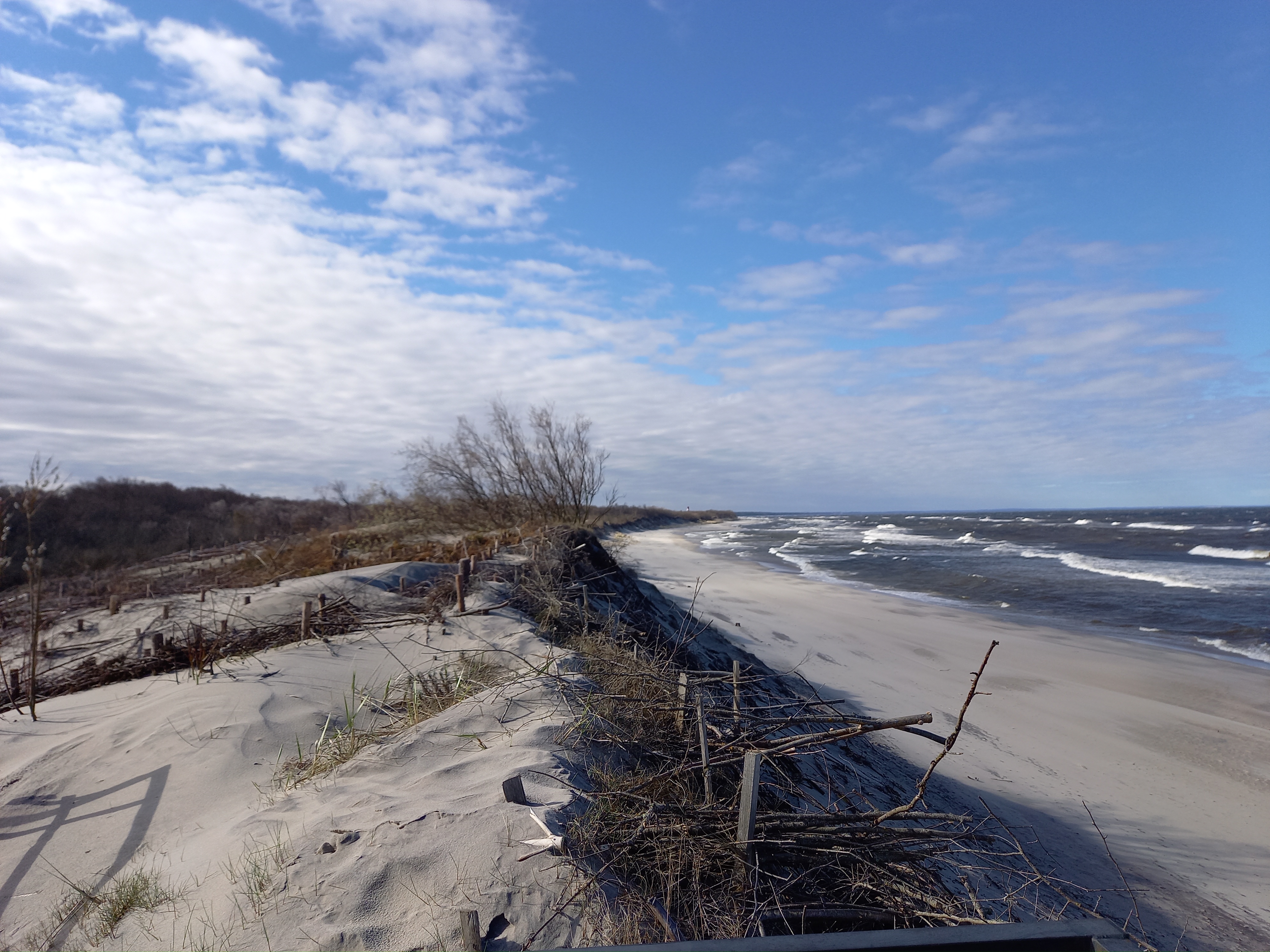 В Национальном парке, первая остановка, выход к морю, где мы знакомимся с авандюнами, фашинами, делаем классные снимки, возвращаемся на парковку, где в единственном месте на Косе продаются куршские лепёшки, по желанию, пробуем лепёшки с куршской вороной и отправляемся дальше.