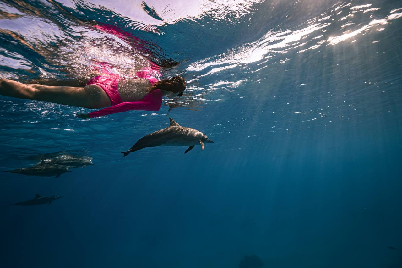 уникальное свободное плавание с дельфинами в их естественной среде;