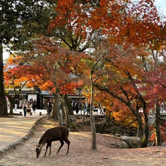 Далее соберёмся и отправимся на поезде в город Нара - первую постоянную столицу Японии, город оленей и храмов. Прогуляемся по парку, где обитают невероятно милые ручные олени. Покормим животных специальными печеньками, посетим храм Тодай-дзи, посмотрим на огромного Будду и прогуляемся по живописной парковой территории