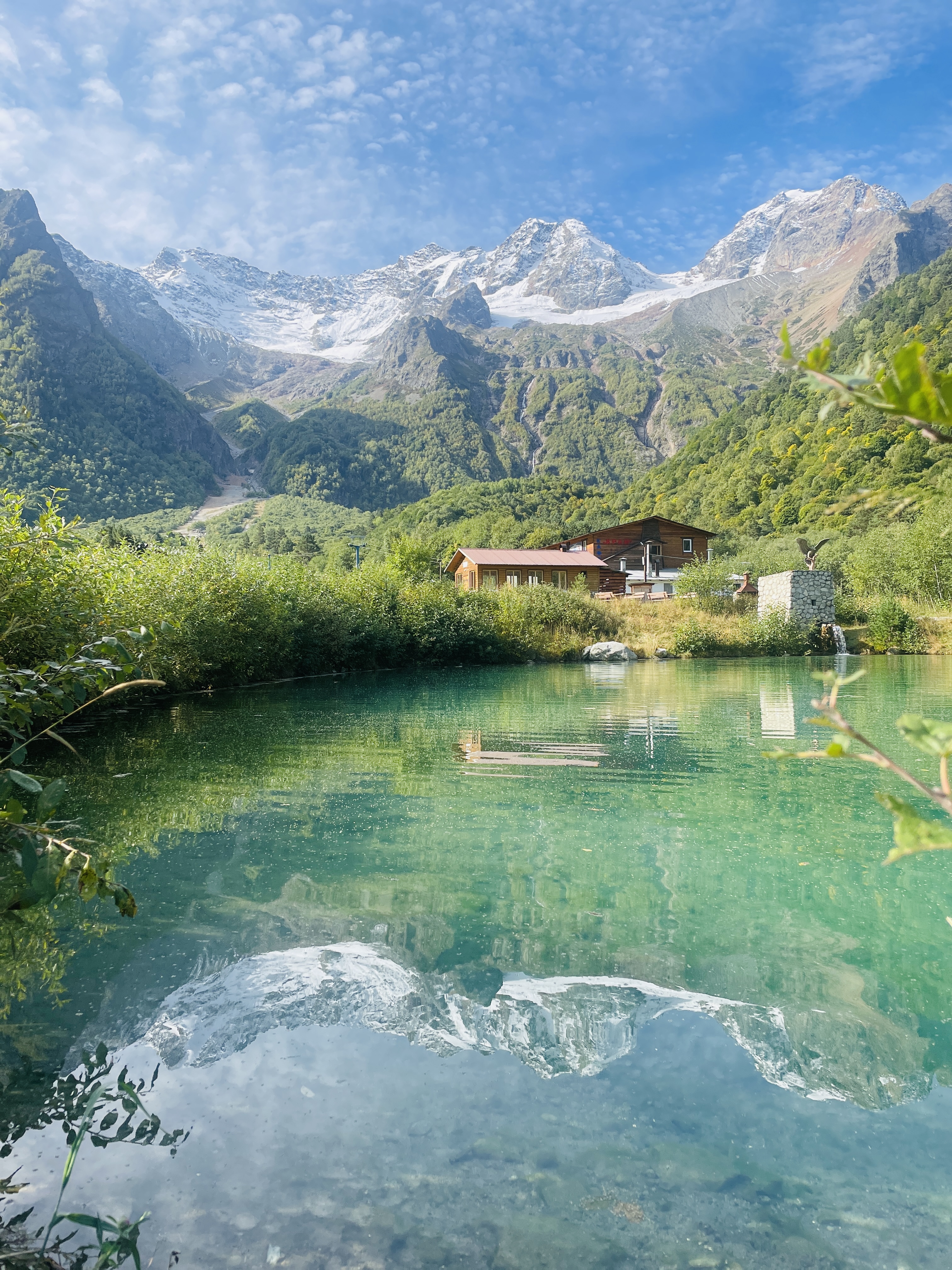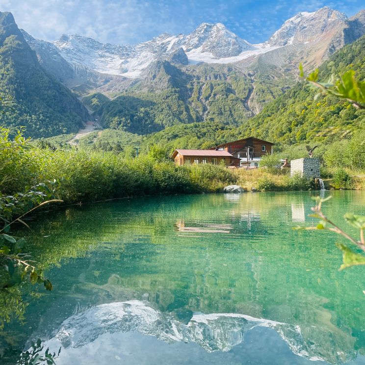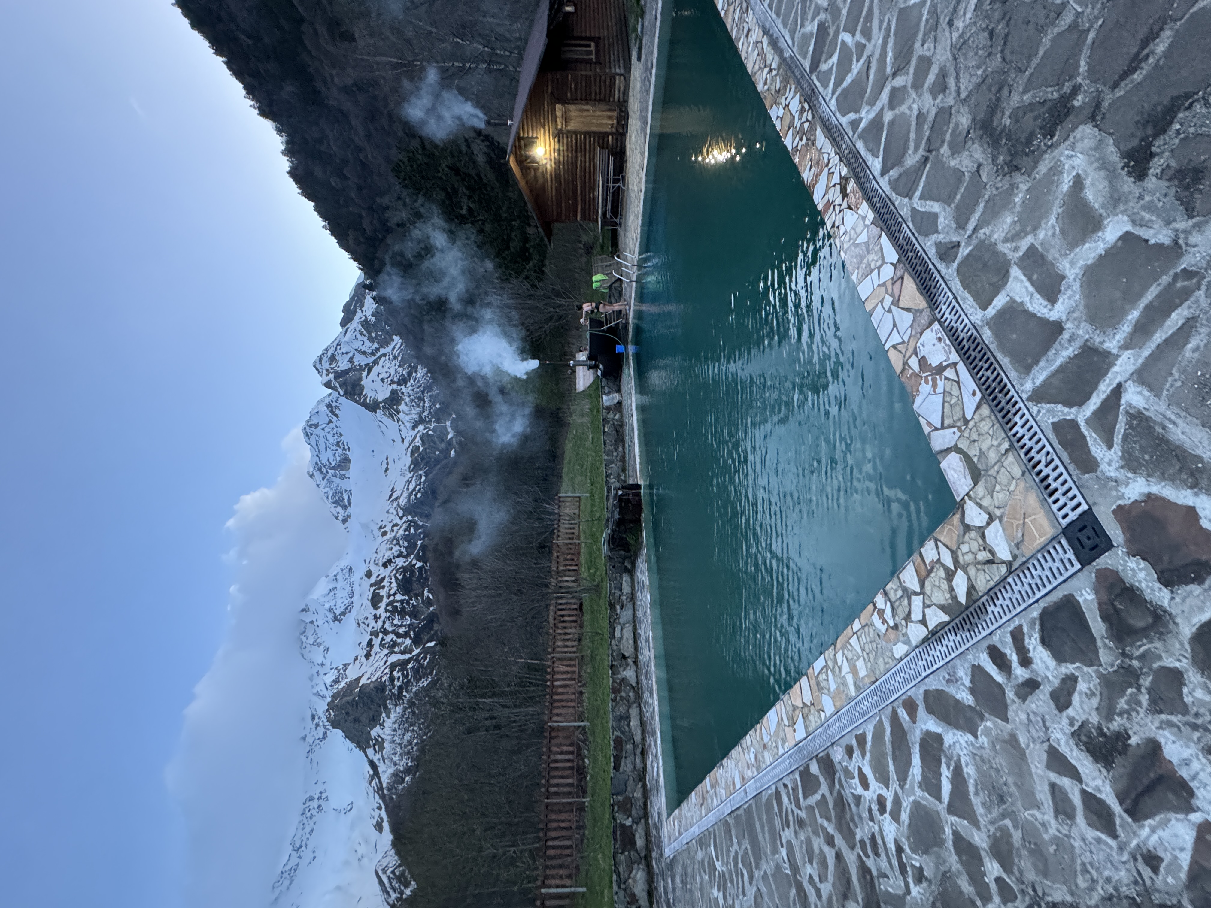 с видом на горы, бассейн с талой водой.