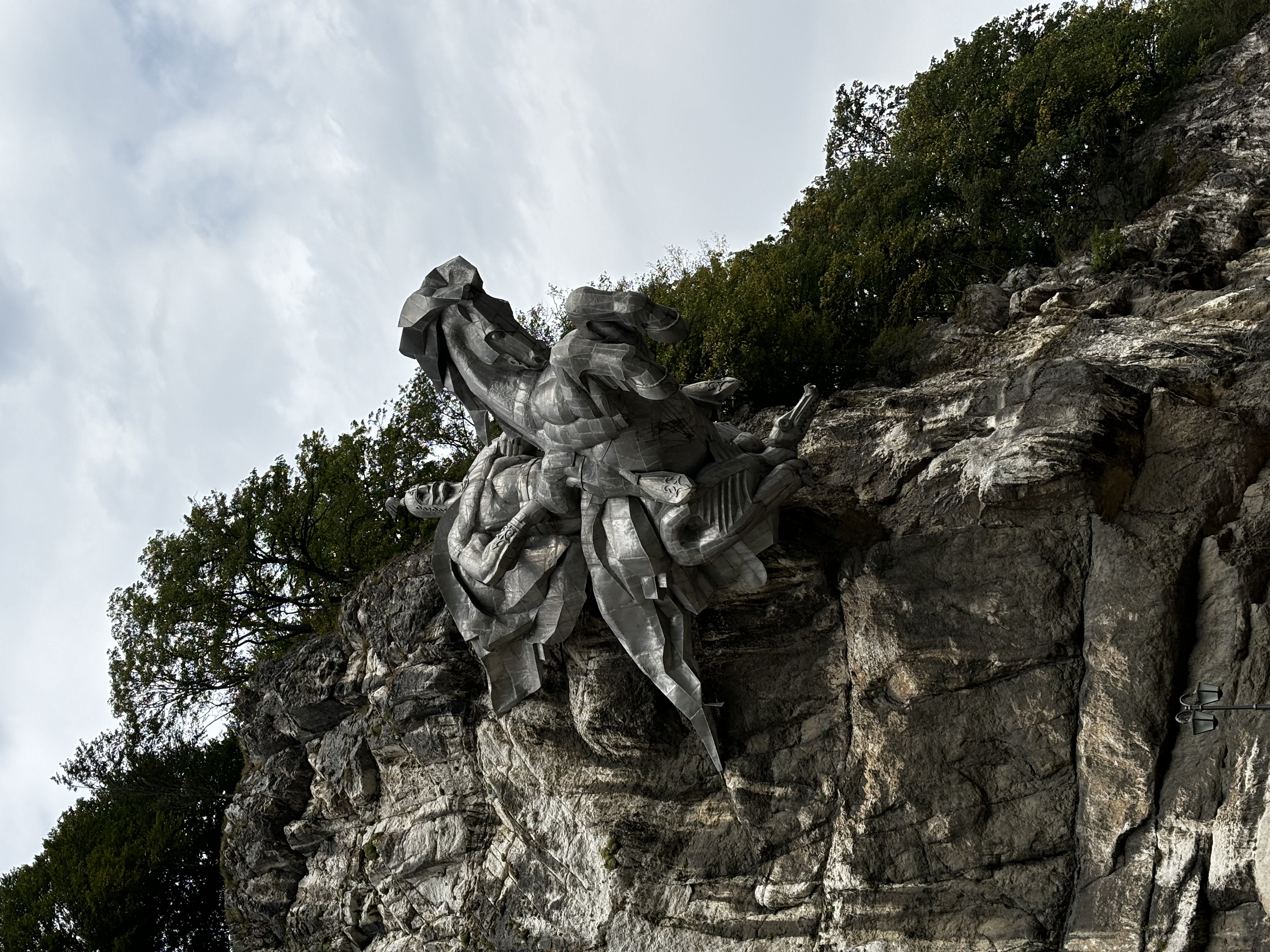По дороге увидим знаменитые качели, парящие над пропастью, Арт объект Осетинская буква А.