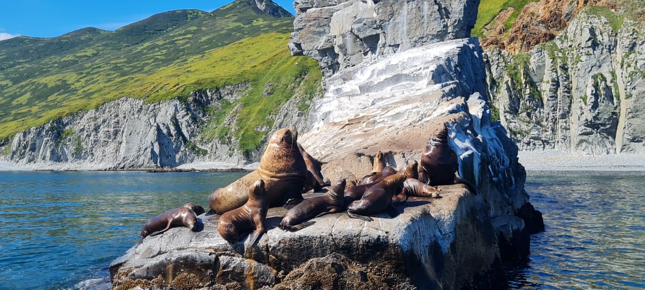 К 8:00 вся группа собирается на пристани и размещается на катере, после чего начнется наш маршрут. Путь до Русской бухты, действительно, изумителен: скалистые образования, красочные берега поодаль создается ощущение, что вы находитесь где-то среди норвежских фьордов. Особую изюминку нашему путешествию добавляет высокая вероятность встретить морских великанов.