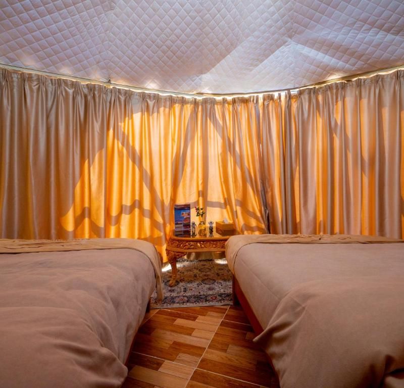 In the evening, enjoy a serene desert camping experience, surrounded by the tranquil beauty of the desert landscape.