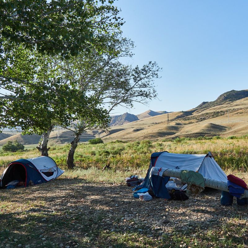 На ночевку от ветры мы спрячемся в одном из оврагов.