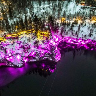 С 16:00 до 19:20 посетим горный парк «Рускеала». Зимой особенно впечатляет вечерняя подсветка каньона и троп. В новогодний период в парке проходят праздничные гуляния и ярмарка с выступлениями артистов и народными забавами.