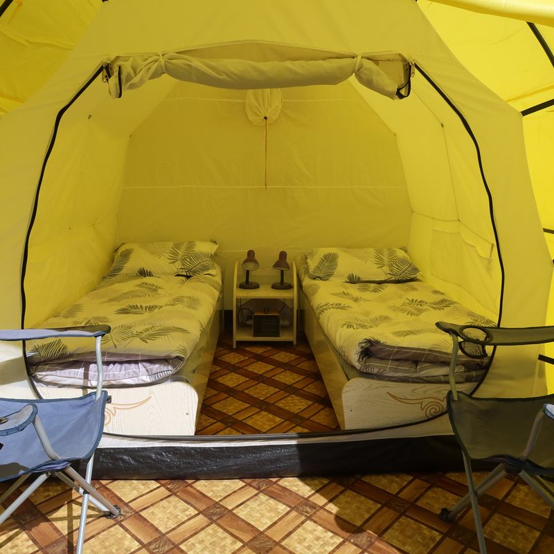 - Вариант Стандарт размещение в комфортабельных отапливаемых палатках с кроватями.