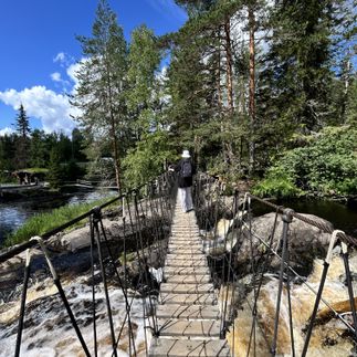 Далее отправляемся к водопадам Ахинкоски - место съемок фильмов А зори здесь тихие и Темный мир. Система небольших, бурных водопадов, эко - тропа, подвесные мостики прямо над падением воды и причудливые деревянные скульптуры. Именно здесь можно приобрести любые карельские ягоды, включая морошку, чаи, полезные травы и многое другое. Обед организуем в одном из кафе на берегу Ладожского озера. А после покорим восхитительную гору - Паасонвуори, с которой открывается невероятный круговой обзор. Наверх ведет очень атмосферная лестница, а помимо пейзажей, гора обладает интересной и значимой средневековой историей
