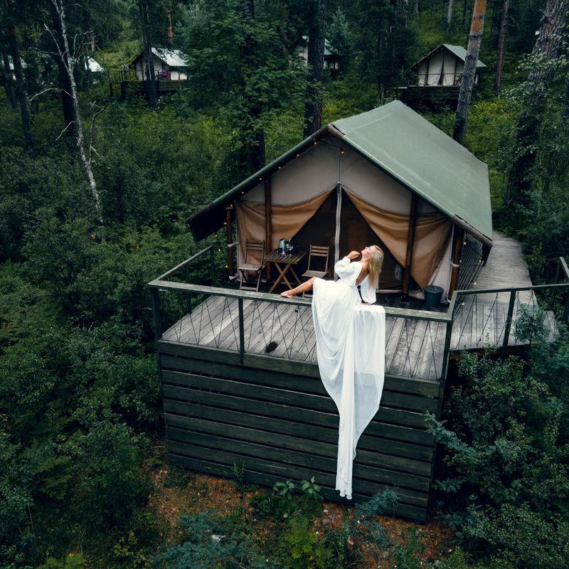 - Проживание 1 ночь в глемпинге по 2 человека, душ с горячей водой в палатке. Туалет на территории
