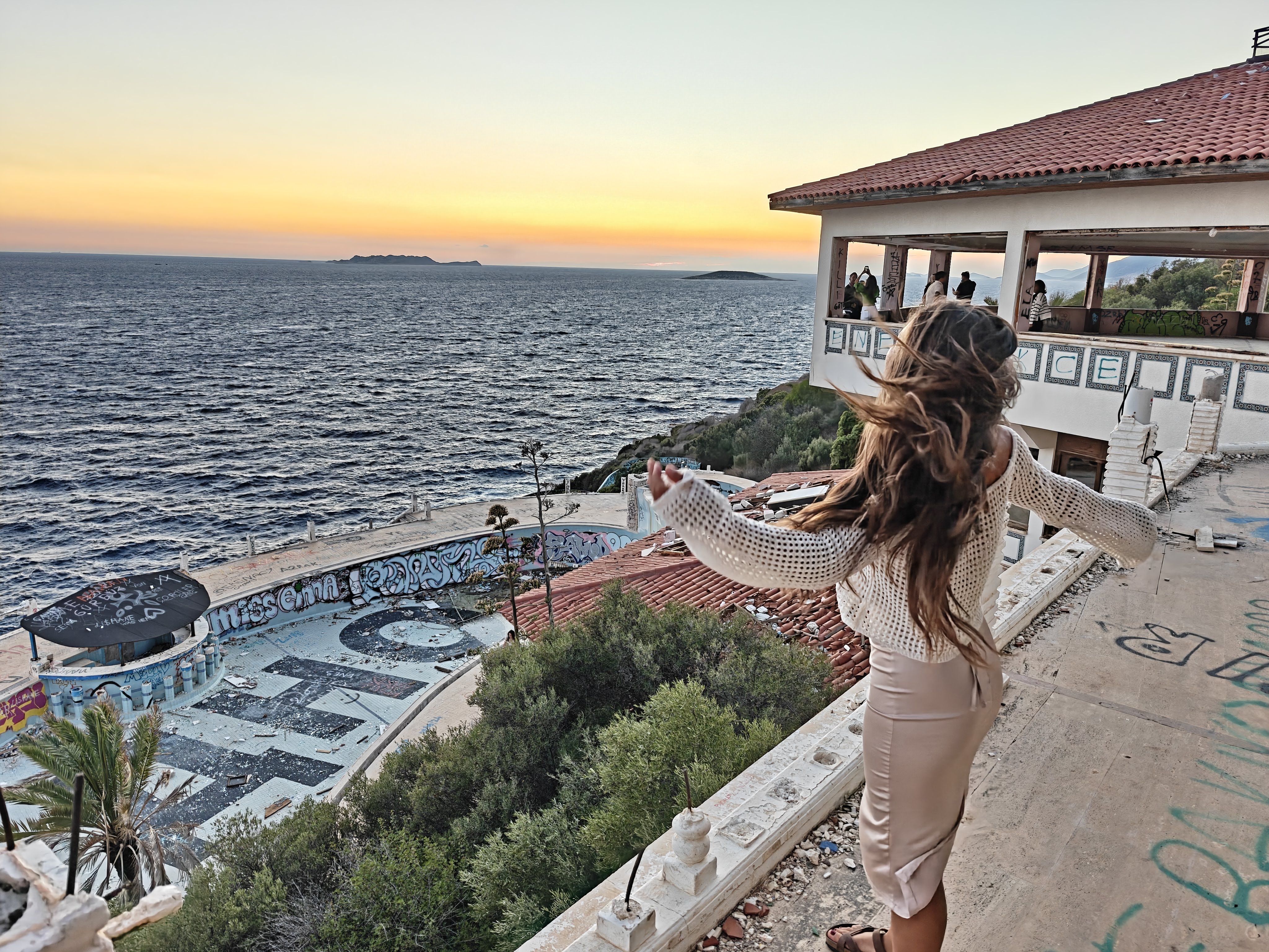 Возвращаемся и по желанию группы идём в знаменитый заброшенный отель, который находится рядом с нашим отелем. Там интересная локация и атмосфера, получаются очень красивые кадры.