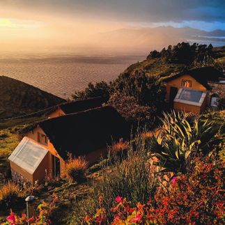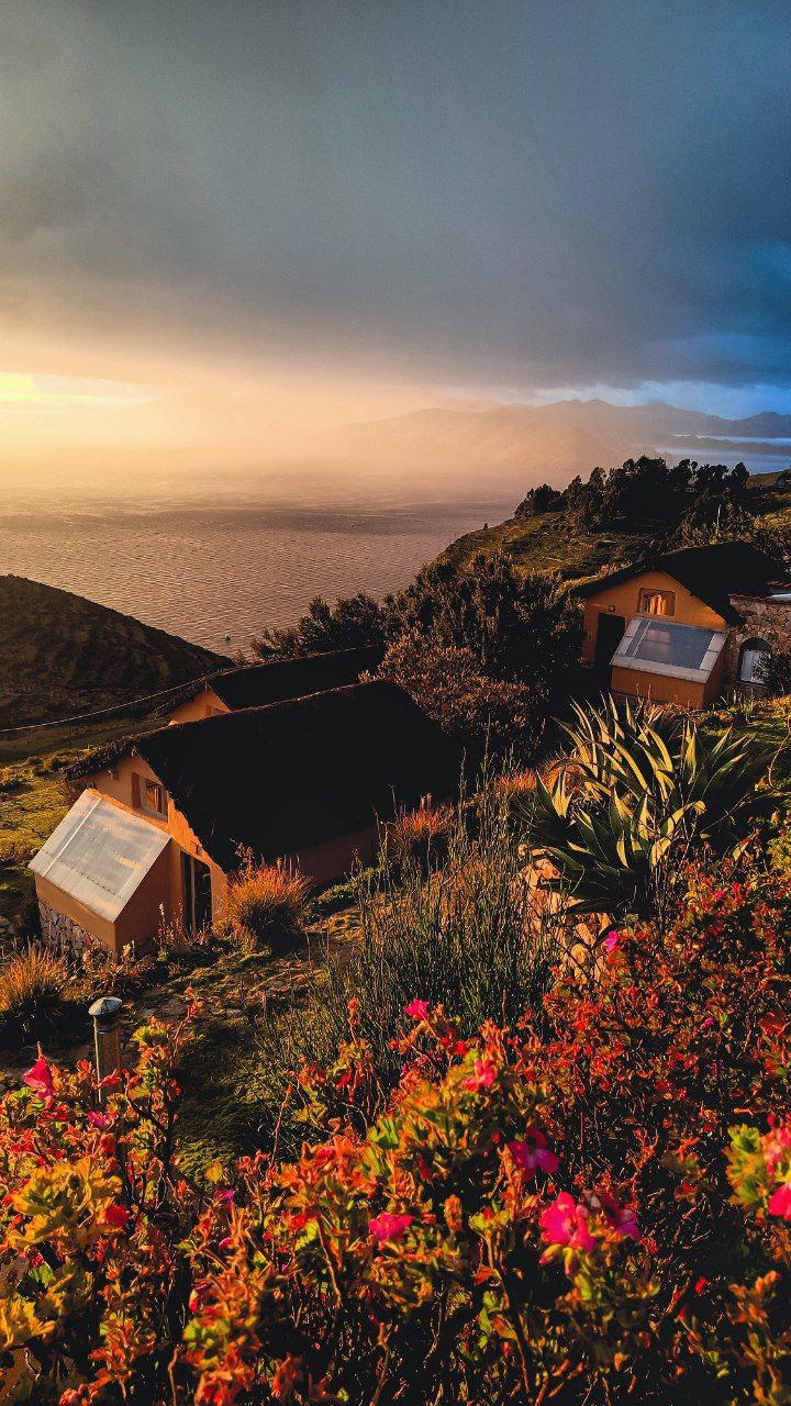 Ночуем в небольшом эколодже с видами на озеро и на остров Луны напротив.