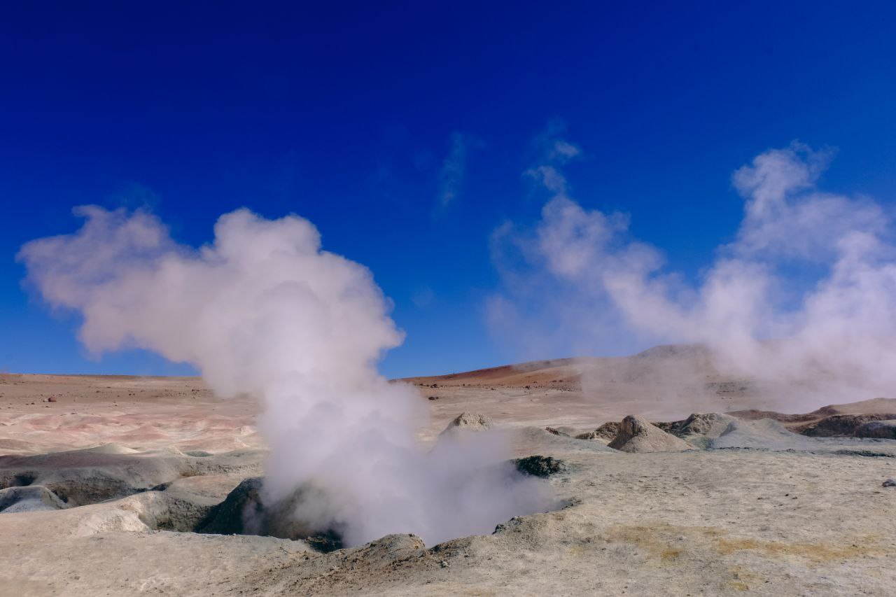 Заканчиваем путешествие по Альтиплано. Встаем рано утром, чтобы как обычно увидеть побольше. Гейзеры, еще пара цветных лагун (например, зеленая), пустыня Сальвадора Дали. Поплаваем в горячих источниках и в районе полудня пересечем границу — мы в Чили!