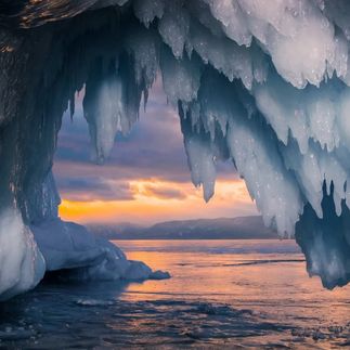- Ледяные пещеры. Сибирский мороз способен сковать даже волны. Наплески воды у берегов замерзают, образуя сокуи и целые гроты с ледяными сталактитами.
