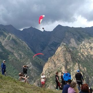 После завтрака мы отправляемся в Чегемское ущелье КБР. Там нам также предстоит увидеть одну из главных достопримечательностей республики -"Чегемское водопады" Теснина ,образованная высоким горами,внутри которых,через камень пробила себе путь вода .Нет смысла описывать всю эту красоту, это просто надо увидеть собственными глазами..Здесь можно попробовать блюда местной кавказской кухни-очень вкусные балкарские хычины, покататься на лошадях,купить сувениры. Затем мы отправляемся на 15 км. вверх по ущелью в кемпинг на парадроме "Чегем" Здесь все желающие, с видеосъемкой и опытным инструктором могут совершить полет на параплане. Ввиду стабильных метеоусловий это место притягивает парапланеристов из многих уголков России. Также здесь есть экстрим развлечения : банджи джампинг и зип лай.Вечером жарим шашлыки и пьем домашнее вино.