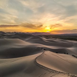 После завтрака 9:00 сходим посмотрим местный музей, где находиться единственный в мире макет мифического червя олгой хорхой. Трекинг по ущелью 8 км. Можно пройтись по маршруту на конях. Пересекаем хребет Гоби-Алтай. Седьмой день путешествия откроет перед нами чарующие пески Хонгорын Элс. Самая живописная часть пустыни Гоби находится в национальном парке Гоби-Гурван-Сайхан. Называется это место Хонгорын Элс, что переводится как поющие пески . Это длинная полоса песчаных дюн, высотой до 300 метров, и протяженностью около 180 километров. Ближе к вечеру поднимемся на один из барханов, будем наблюдать на закате дня перемену красок, игру тени и света, постигать тайну живописи Рериха, который черпал свое вдохновение в изумительных пейзажах Центральной Азии. Размещаемся на юрточной базе ужинаем принимаем душ и отдыхаем.