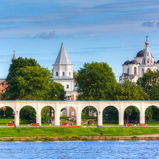 Начнём знакомство с Великим Новгородом с кремлёвского комплекса — стен и башен древнего Детинца, основанного в 1044 году Ярославом Мудрым. Здесь когда-то проходило вече, выбирали посадника и писали летописи. Мы увидим Лихудов корпус, Софийский собор 11 века — один из выдающихся памятников древнерусского зодчества, Софийскую звонницу 16 столетия с коллекцией колоколов и памятник «Тысячелетие России», запечатлевший историю государства в бронзе.