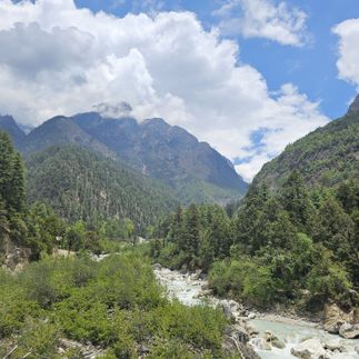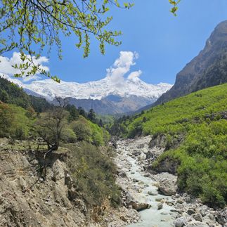 Утро начинается с неспешного подъёма по тропинкам, что вьются между каменных домов и террасных полей. Мы проходим через леса, звенящие от пения птиц, пересекаем подвесные мосты и ощущаем, как воздух становится свежее с каждым шагом. В Гхо открываются виды на мягкие зелёные склоны, а деревня дышит умиротворением и спокойствием.