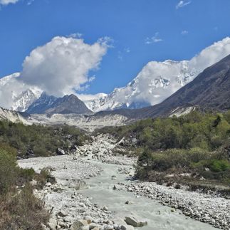 Сегодня мы войдём в царство альпийских лугов. Бимтанг встречает нас горными ручьями, сосновыми лесами и прозрачным воздухом, от которого кружится голова. Здесь горы словно приближаются — Манаслу, Хималчули и Нгади Чули стоят в белоснежной тишине, создавая ощущение, что мы находимся в самом сердце Гималаев.