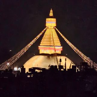 Вечером нас ждёт прощальный ужин с видом на величественную Бодханатх — самую большую ступу в мире. Тысячи молитвенных флагов развеваются в вечернем небе, и кажется, что сама Вселенная благословляет наше путешествие.