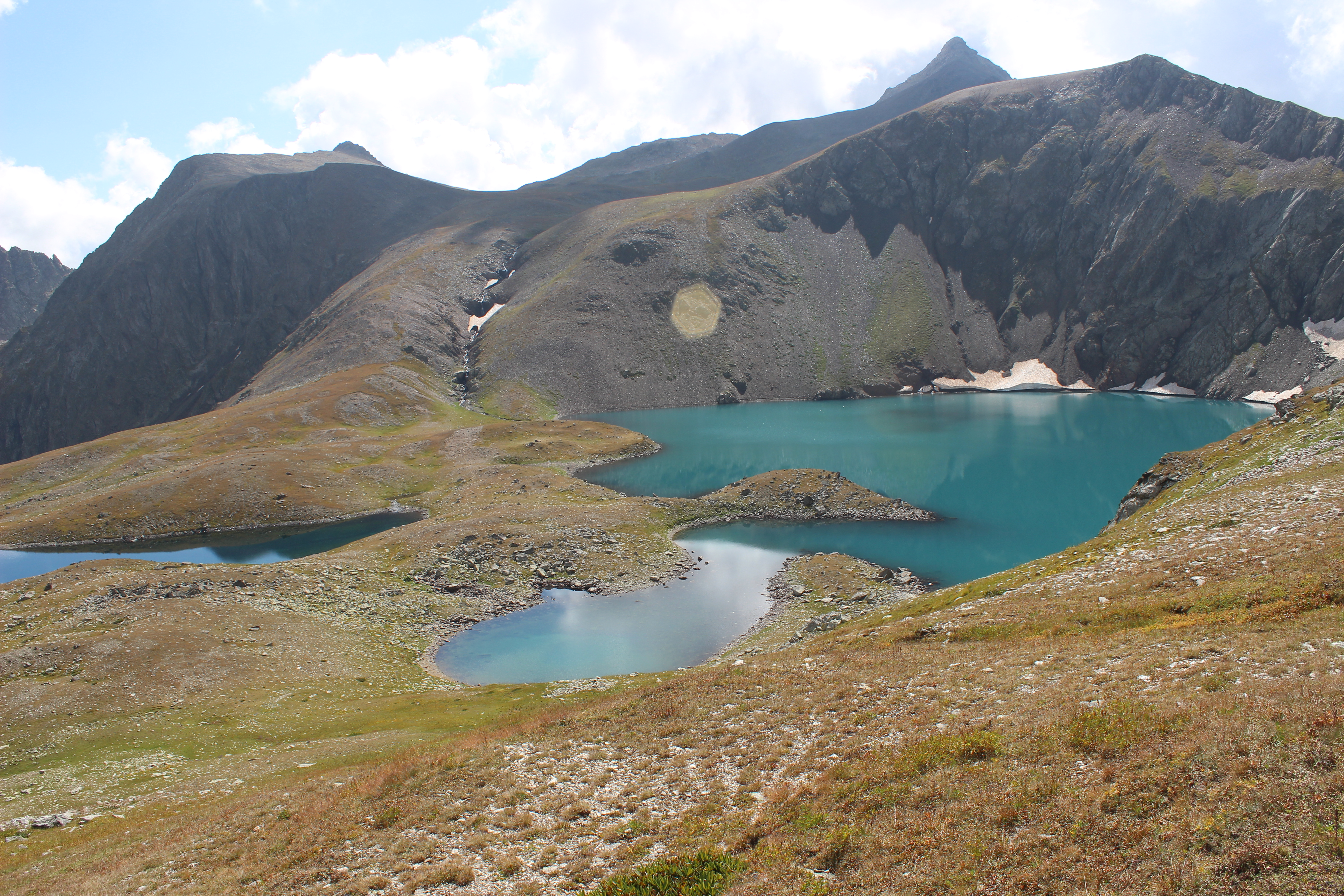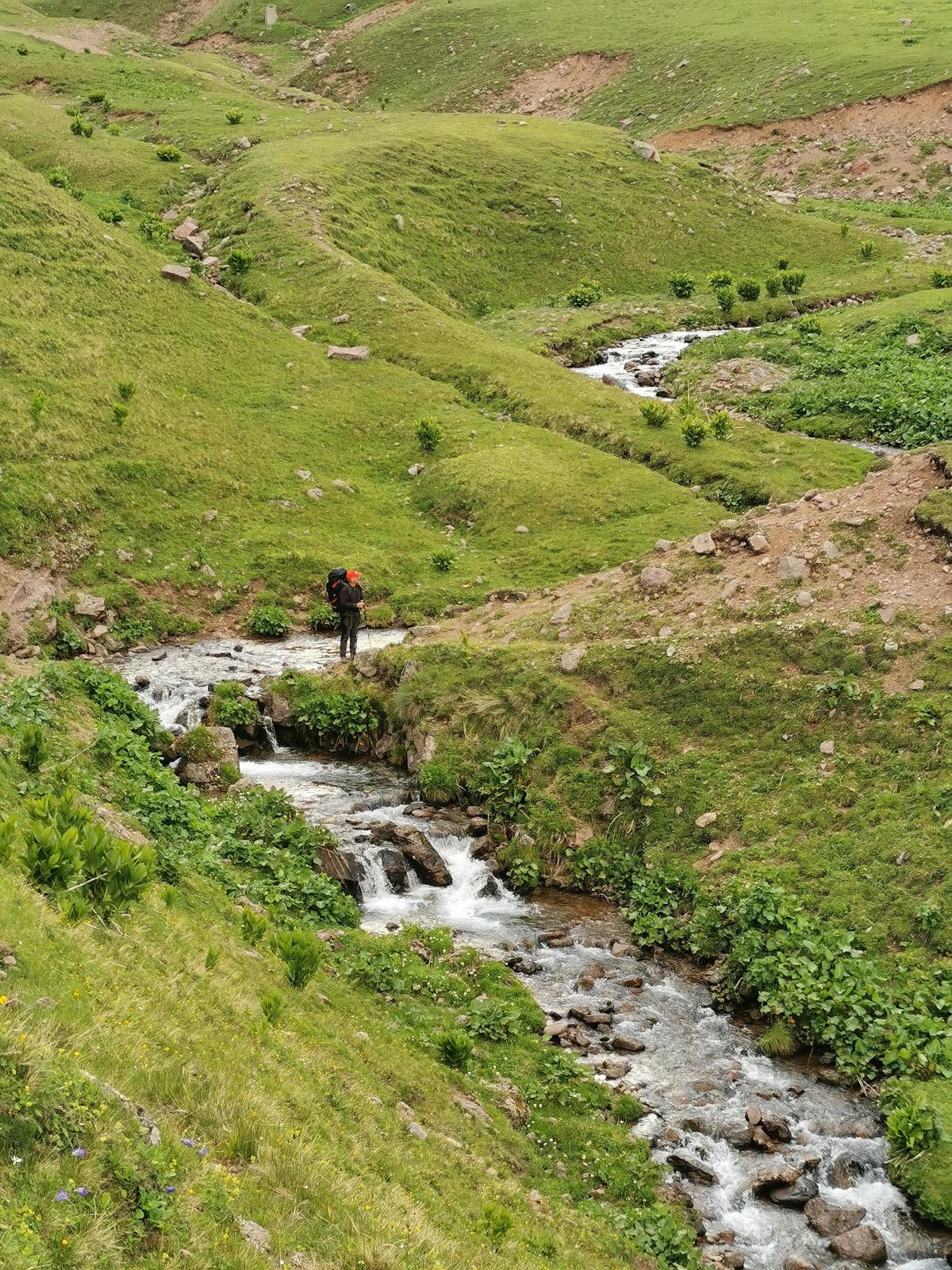 День: спуск вниз по долине реки Кяфар. Переход до озера Рыбное. Подъём по долине реки Кызылчук. Обед. Переход к озеру Голубое.