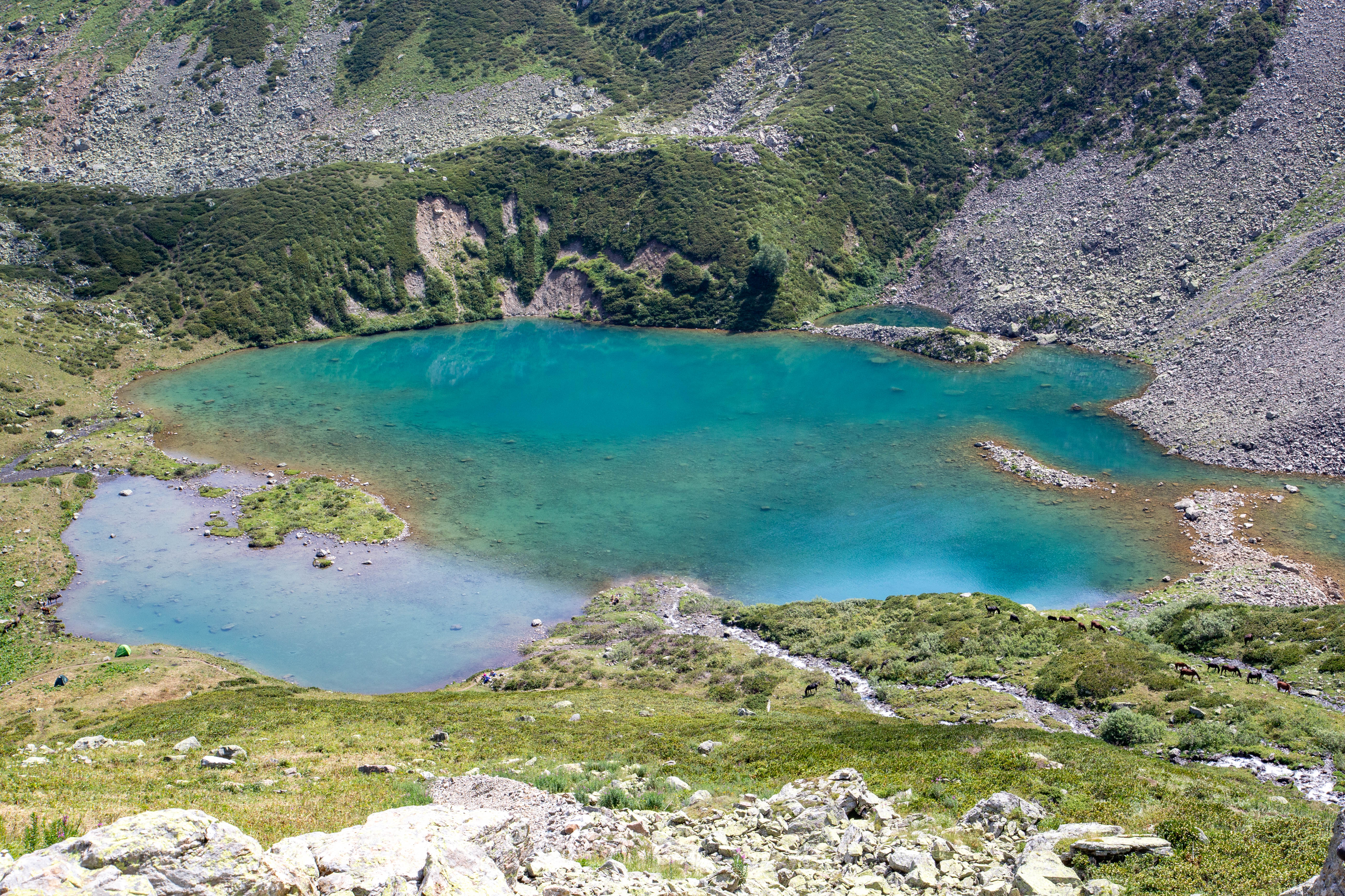 Сегодня мы прощаемся с высокогорной страной озёр. Собрав лагерь, начинаем неспешный спуск вниз, навстречу зелёным долинам. По пути нас ждёт ещё одно чудо — озеро Айматлы-Джагалы Кёль, расположенное на высоте 2404 м.