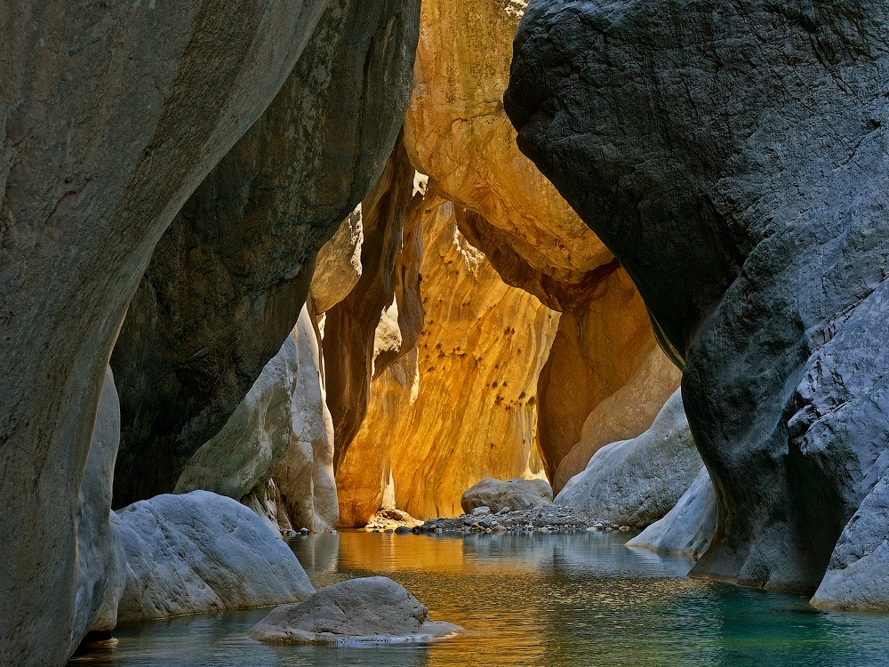 После завтрака отправляемся на прогулку по живописному каньону Гейнюк. Это одна из самых интересных природных достопримечательностей на Восточной части Ликийской тропы. Тропа входит в узкий каньон с высокими скалистыми бортами изящной формы. Цвет породы сильно варьирует от зеленого до рыжего и коричневого. Для того, чтобы посетить центральную часть каньона, потребуется специальное снаряжение - гидрокостюм, жилет и каска. Вода в ущелье довольно холодная (15-18 градусов по Цельсию). Вначале нам предстоит преодолеть скальный прижим длиной около 10 м. Впереди - огромный валун, преграждающий дальнейшй вход в ущелье