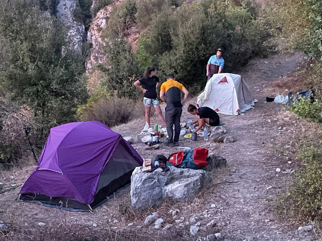 - походная кухня на местах проживания в палатках (завтрак и ужин полноценный, обед на выходах: бутерброды, чай, сладкое)