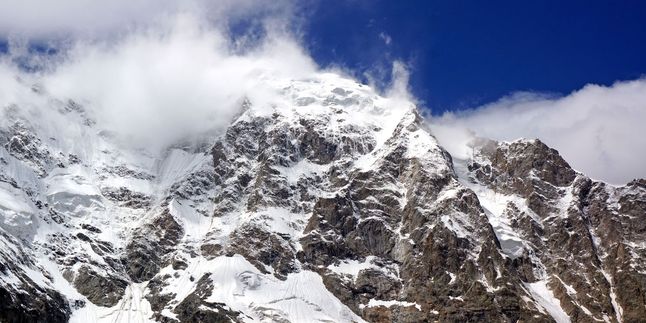 Чтобы достигнуть места нашей ночёвки, движемся в сторону Безенгийской стены, оставляя за спиной все проявления живой природы. Вокруг снежные кавказские исполины, под ногами лёд и камни.