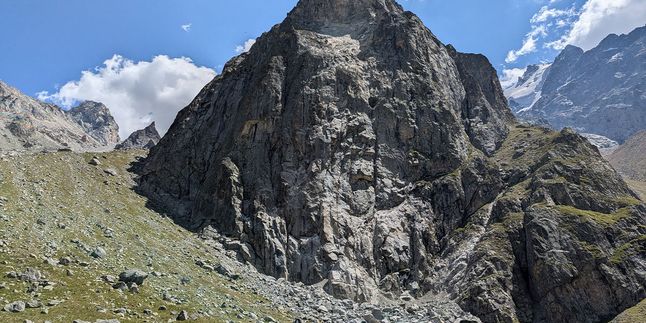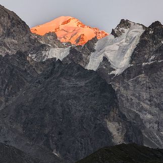 И снова поспать подольше не получится. За тонкой стенкой палатки уже ждёт кульминация наших приключений. Выходим на штурм вершины Кёльбаши 3596м - это одна из лучших смотровых точек на пики Безенгийской стены, ледник и, вообще, 360 градусов полные Вааау :) Попасть сюда не просто: на пути крутой взлёт и траверс сыпучего склона, но мы не зря столько тренировались.