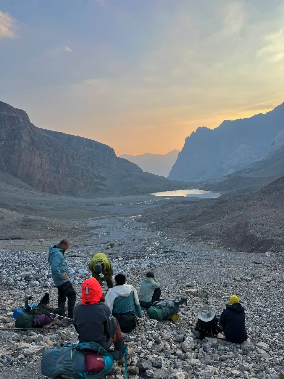 Сегодня запланирован радиальный выход на перевал Чимтарга, расположенный на высоте 4750 метров между двумя величественными вершинами — Чимтаргой и Энергией. Этот перевал соединяет район Мутных озёр и долину реки Правый Зиндон. Несмотря на отсутствие технических сложностей, предстоит значительный подъём на высоту порядка 1000 метров, начиная от лагеря на Мутных озёрах и достигая отметку 4750 метров. Значительная часть маршрута пройдёт по леднику.