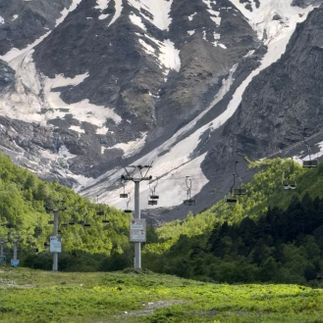Канатная дорога к леднику Сказка Подъем на канатной дороге (высота — 2500 м).