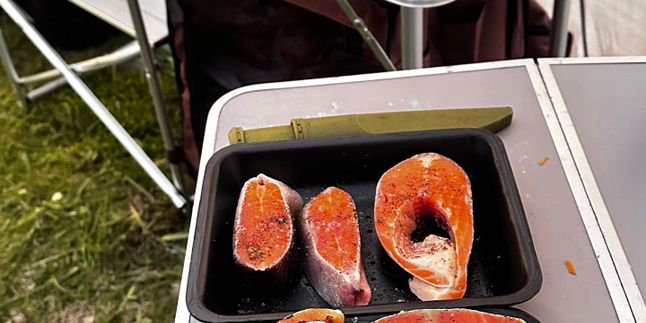 20:00 ужинаем. Кормим вкусно! Шашлык, уха, паста и курица со сливками. Мы постарались что бы меню было максимально вкусным в диких условиях бездорожья и отрыва от цивилизации. На полуостров Рыбачий мы везем продукты в дорожном холодильнике.