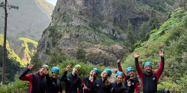 После спуска день продолжается у океана, и у нас впереди более активная часть маршрута. Каньонинг позволяет буквально прочувствовать Мадейру изнутри: прохладная вода, каменные ущелья и непосредственный контакт с дикой природой острова.