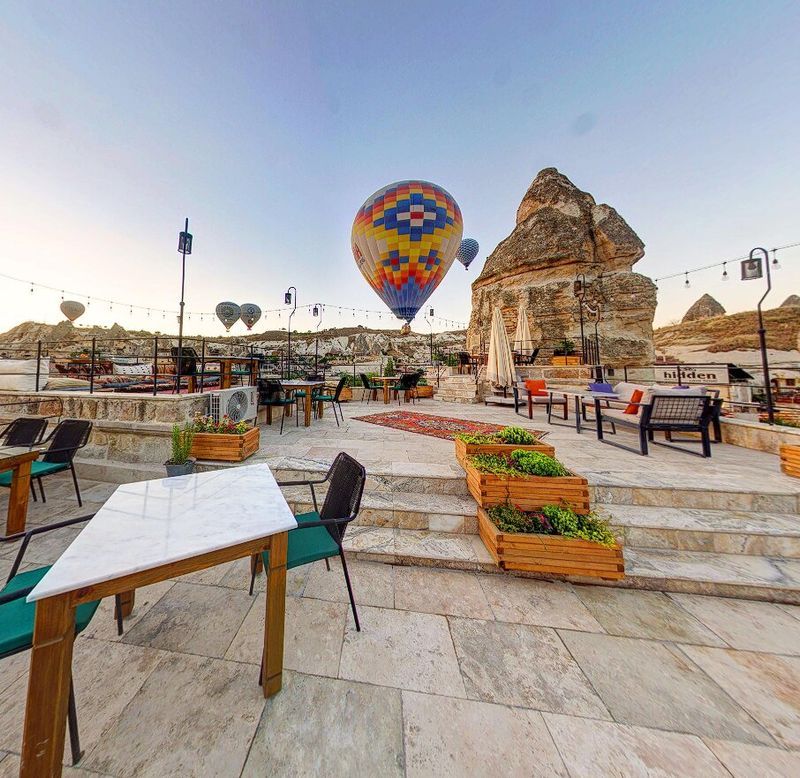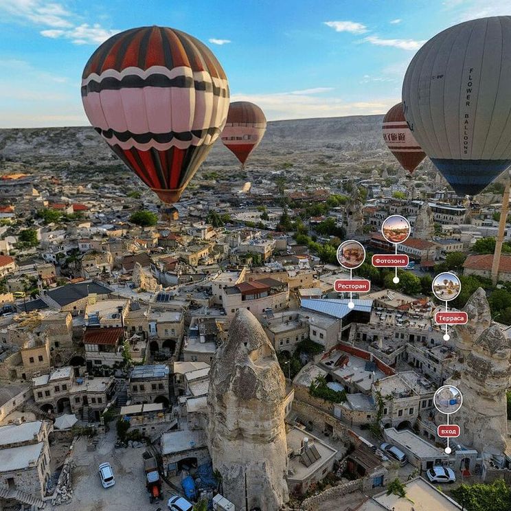Раннее утро этого дня начинается с одного из самых сильных впечатлений всей поездки — полёта на воздушном шаре над Каппадокией. На рассвете мы поднимаемся в небо, чтобы увидеть долины, скалы и каменные гребни в мягком утреннем свете, когда весь пейзаж кажется почти нереальным. Это тот самый момент, ради которого сюда мечтают приехать: тишина, высота, ощущение свободы и красота, которую невозможно до конца передать ни словами, ни фотографиями.