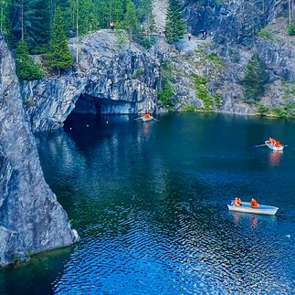 После этого мы отправляемся в Рускеальский парк — одно из самых впечатляющих мест Карелии. Здесь нас ждут мраморные каньоны, чистая бирюзовая вода, величественные скалы и та особая атмосфера северной красоты, которая сразу захватывает внимание. Мы будем гулять по парку, узнавать историю этого места, любоваться видами и проживать Карелию ещё глубже — не только через природу, но и через её масштаб, фактуру и редкую эстетику.