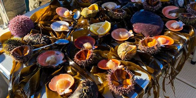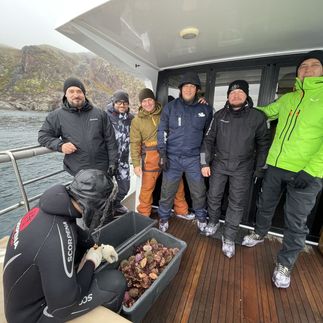 Но впечатления этого дня раскроются не только через море и китов. Вместе с нами на борту будет профессиональный дайвер, который соберёт для нас 50 кг свежих морепродуктов — ежей и гребешков — прямо со дна Баренцева моря. На борту мы увидим весь процесс, узнаем, как их правильно открывать и есть, и попробуем деликатесы в самой красивой и редкой подаче, которую только можно представить. Это будет не просто дегустация, а особенный гастрономический опыт: море вокруг, солёный северный воздух, свежайшие морепродукты и ощущение, что вы проживаете Север глубже, чем большинство путешественников.