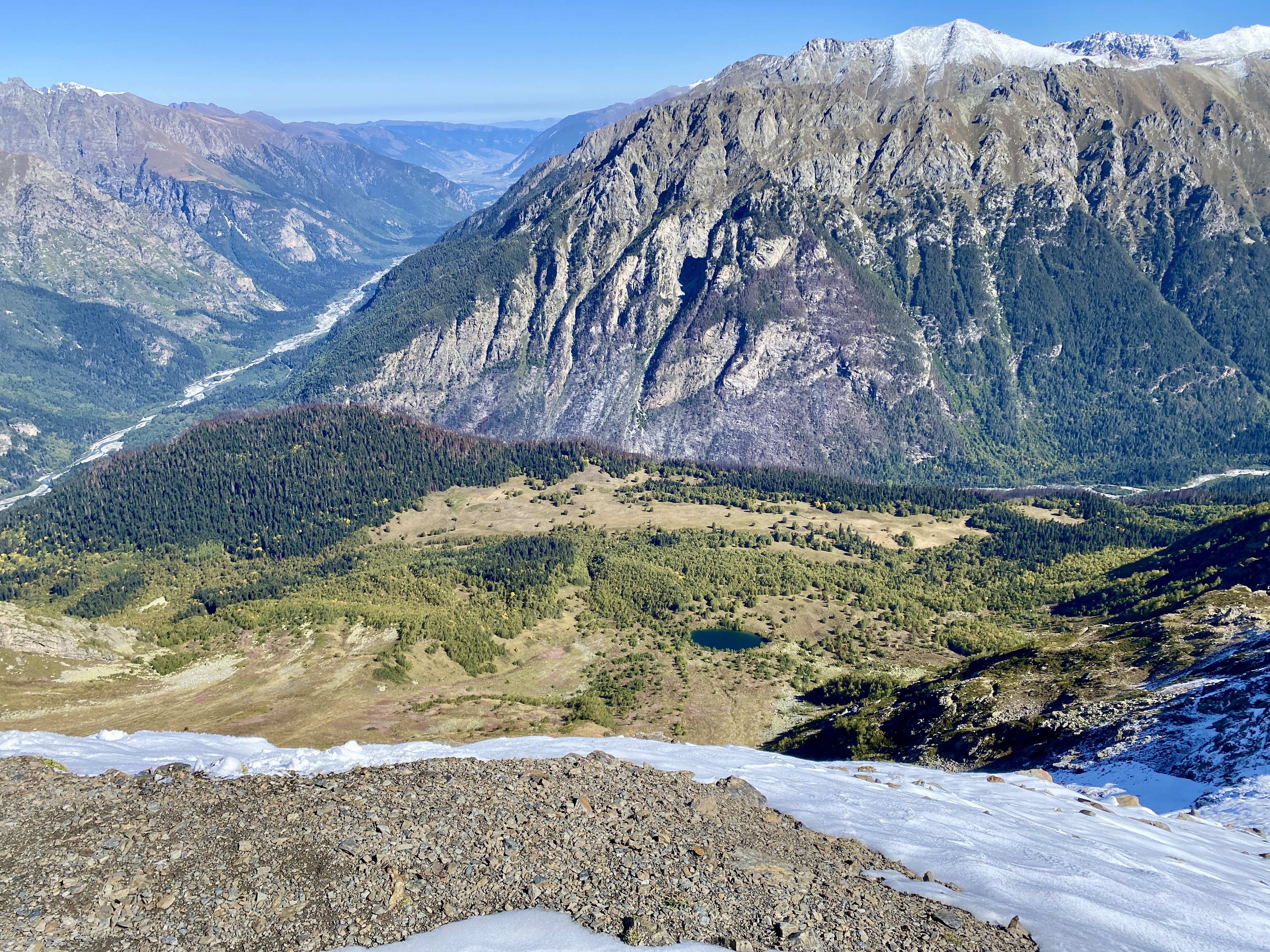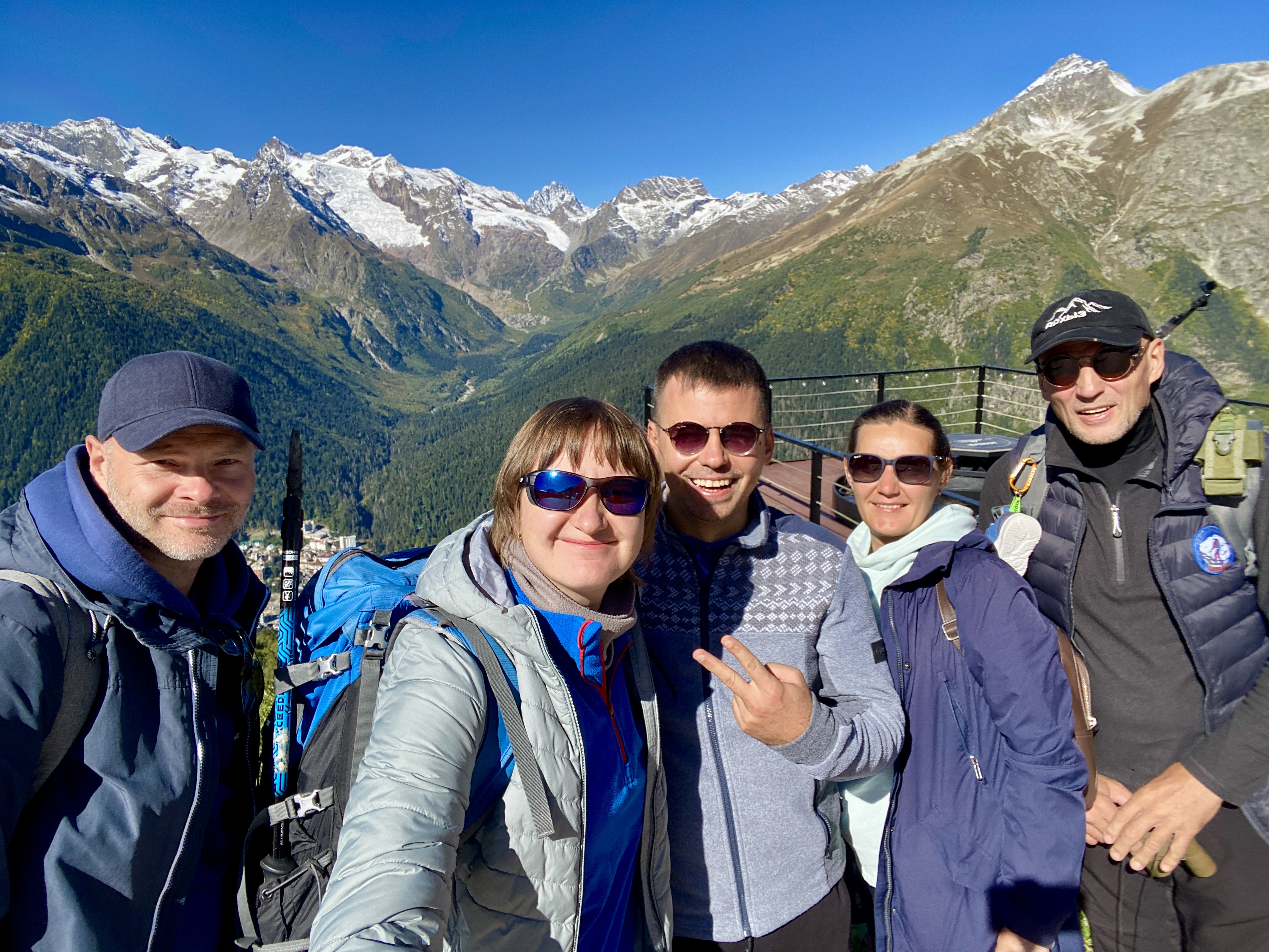 На вершине открывается панорамный вид на Тебердинскую долину и окружающие хребты Западного Кавказа. После спуска группа направляется в Теберду, где день завершается ужином на форелевом хозяйстве.Хозяйство работает на чистой горной воде, поступающей из местных источников, что напрямую влияет на качество рыбы.