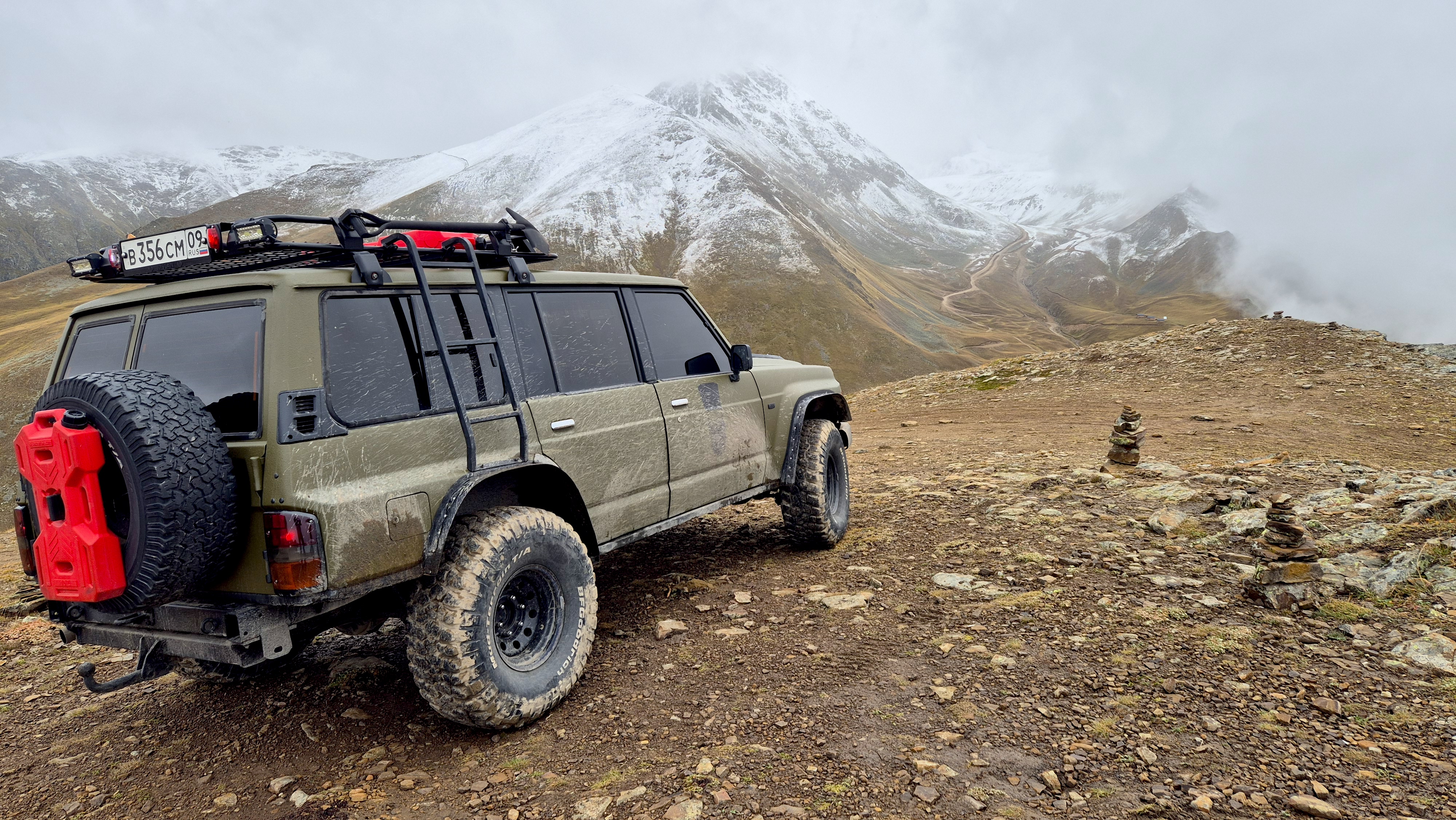 После теплой встречи едем через перевал Гум-баши. Делаем остановки, фотографируемся и общаемся. Мы проезжаем по нестандартному пути специально, чтобы полюбоваться пейзажами и погрузиться в виды гор, еще не доезжая до Домбая.