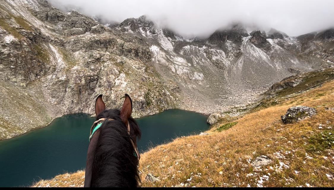 В первой половине дня проходит конная прогулка по маршруту на гору, расположенную в окрестностях Теберды. Перед выходом участники проходят краткий инструктаж. Лошади спокойные и хорошо обученные, маршрут рассчитан на людей без опыта верховой езды.