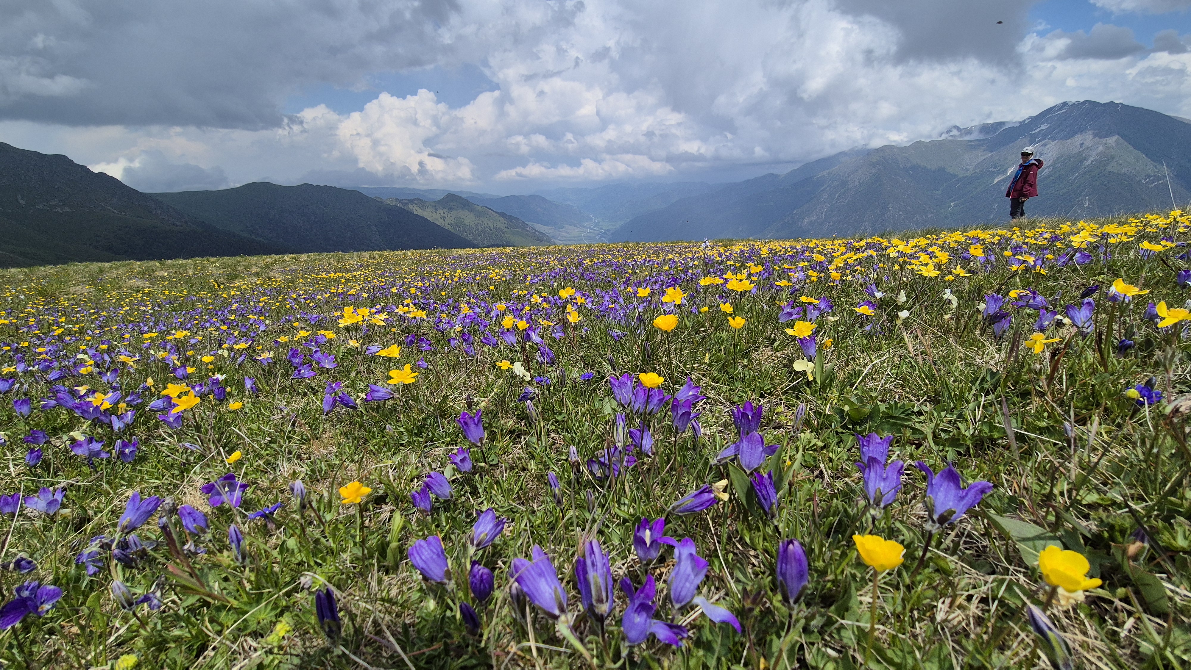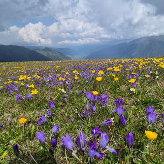 По мере набора высоты лес постепенно уступает место открытым пространствам. Начинается альпийская зона. Рельеф становится шире, горизонт раскрывается, появляются высокогорные луга с плотным ковром разнотравья. В начале лета здесь цветут горные растения, привлекая насекомых и наполняя пространство негромким живым движением.