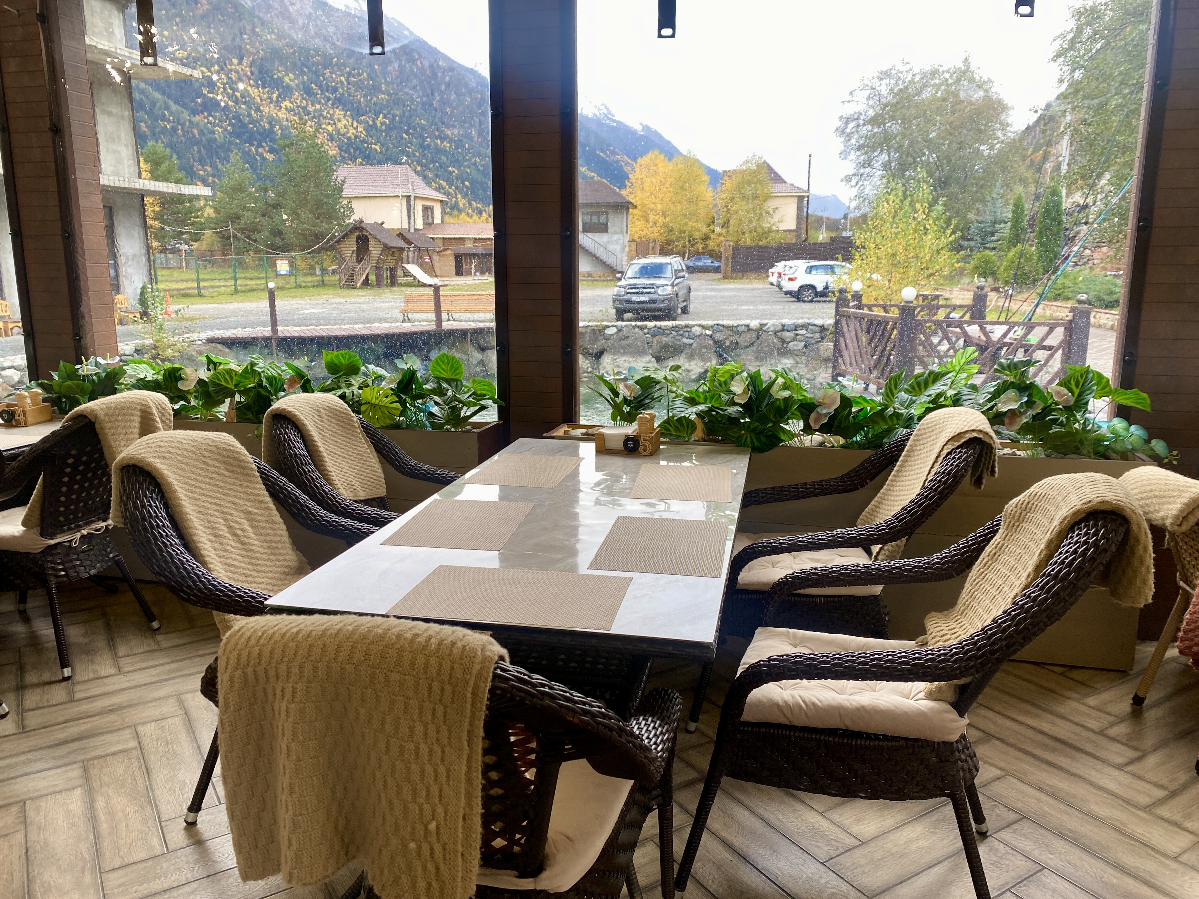 Форель выращивается в проточных бассейнах с естественным температурным режимом. Ужин проходит в закрытом зале или на открытой террасе с видом на горы. В меню — свежеприготовленная форель и блюда кавказской кухни, приготовленные из локальных продуктов.