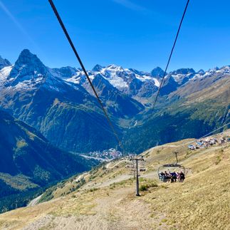 Утром канатная дорога поднимет группу на гору Мусса-Ачитара. Набираем высоту, нам открывается панорама Домбая и окружающих хребтов, где хорошо исследовать структуру горного рельефа и пейзажи, которые образовывались тысячелетия.