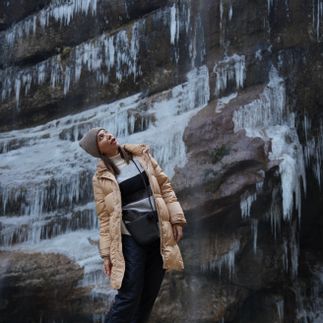 Напоследок заедем полюбоваться на заледеневшие Медовые водопады и на необычное скальное образование — Гору-кольцо.
