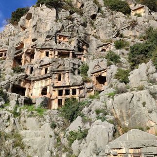 Утром мы отправляемся осмотреть руины античной Миры — одно из самых открыточных мест Турции, где в необычном ансамбле сохранились следы двух древних цивилизаций: ликийские гробницы, высеченные в скалах, и греко-римский амфитеатр, который словно застыл во времени и прекрасно сохранился почти в первозданном виде.